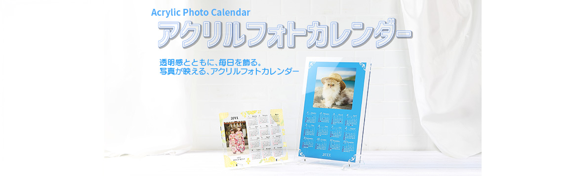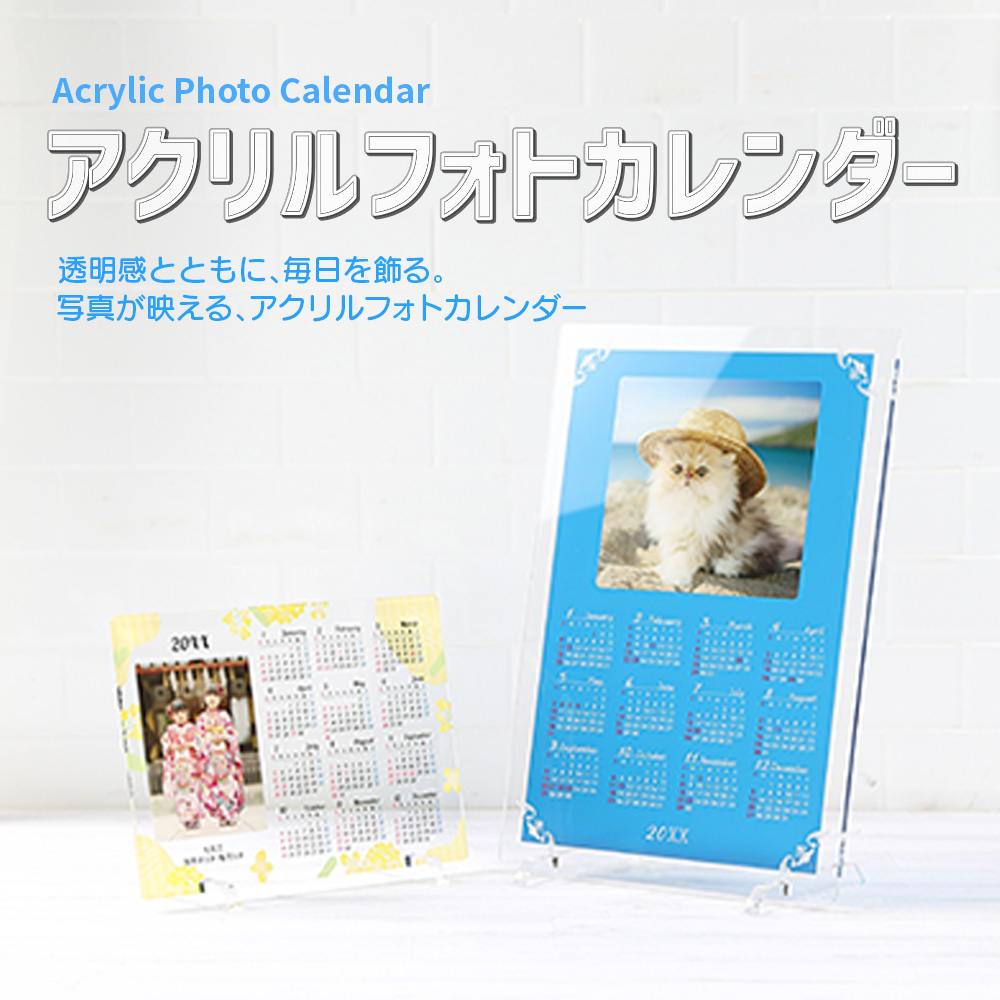 Create an original calendarWhy not turn your favorite photos saved on your smartphone or computer into a luxurious and transparent acrylic photo? With high-quality UV printing unique to photo labs, you can easily create your own original acrylic photo.